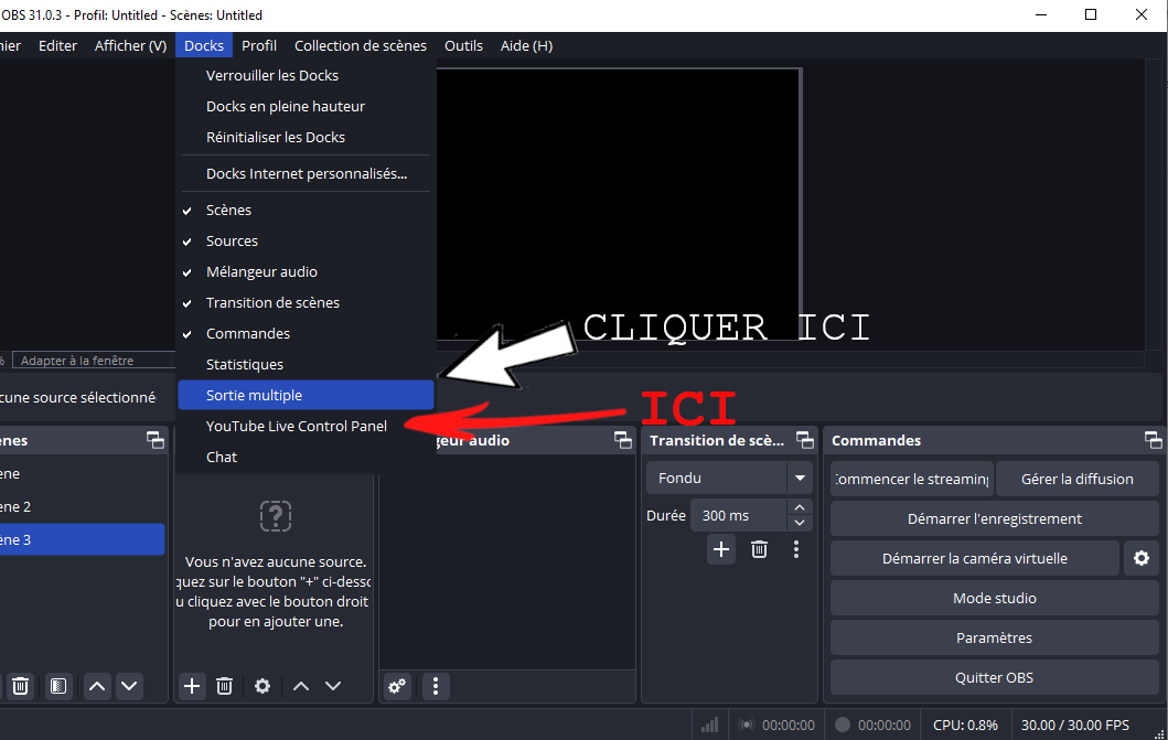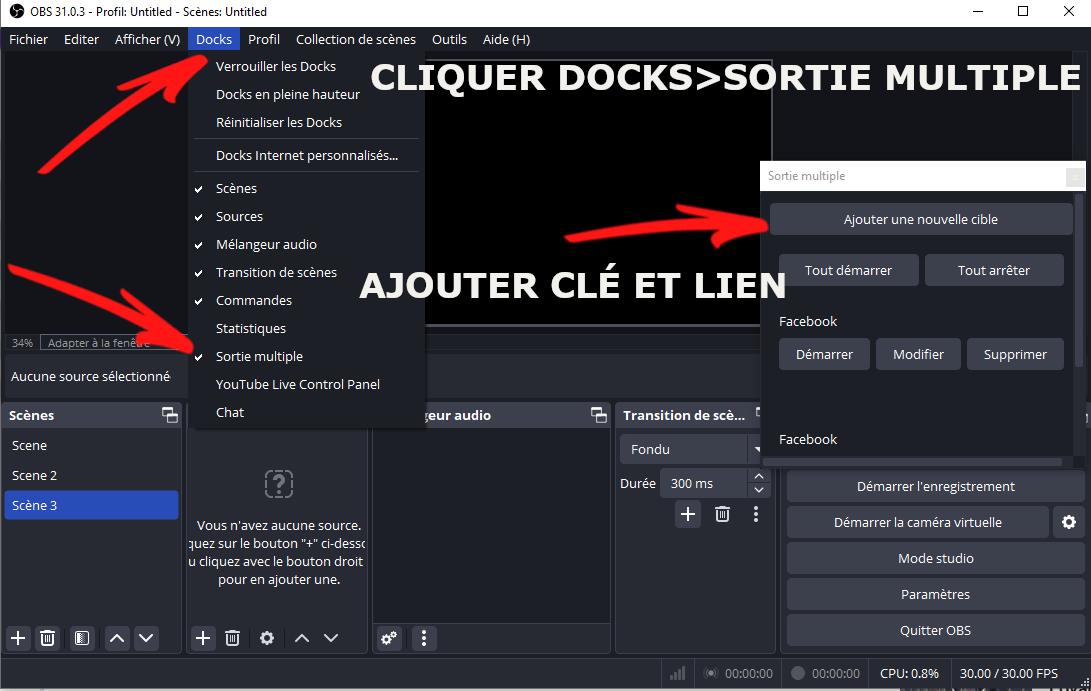 Vous devez télécharger OBS Studio (ici) et le plugin de multistreaming (multidiffusion) sur les réseaux sociaux (ici), puis les installer.