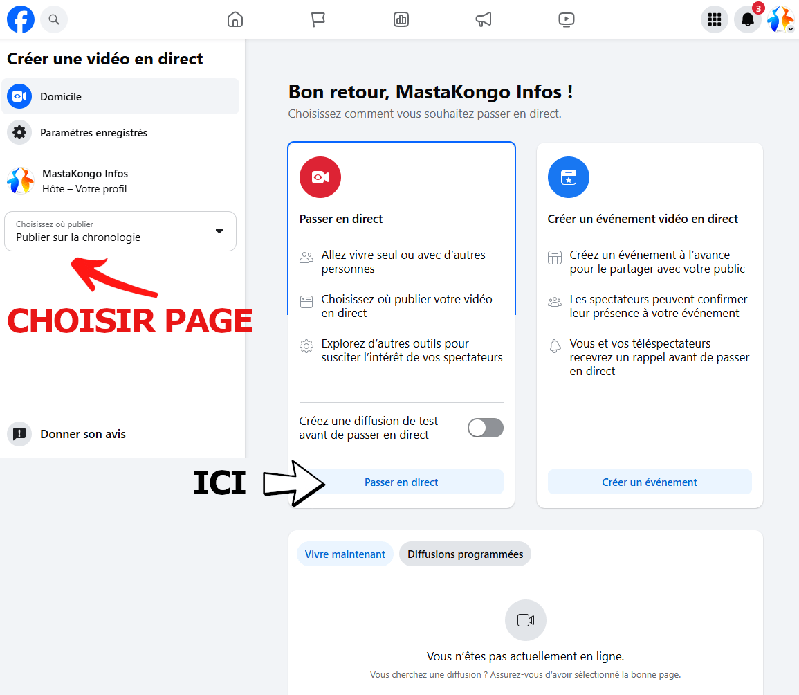Recherchez une option comme « Diffuser sur PC » ou « Transférer vers PC/Mac » sous le bouton « Lancer le direct ».