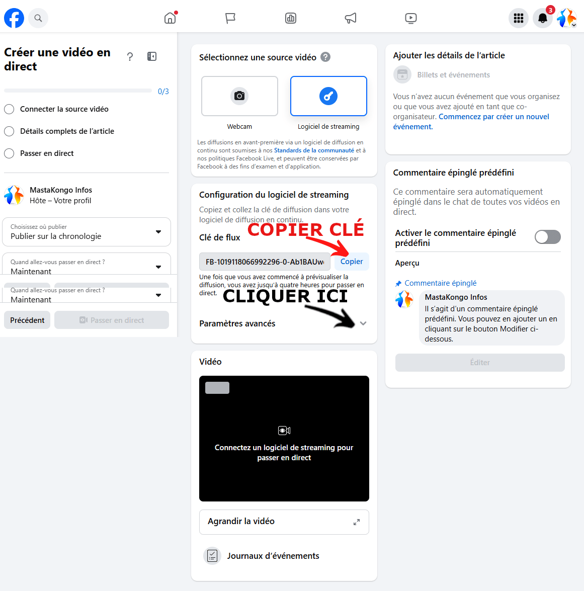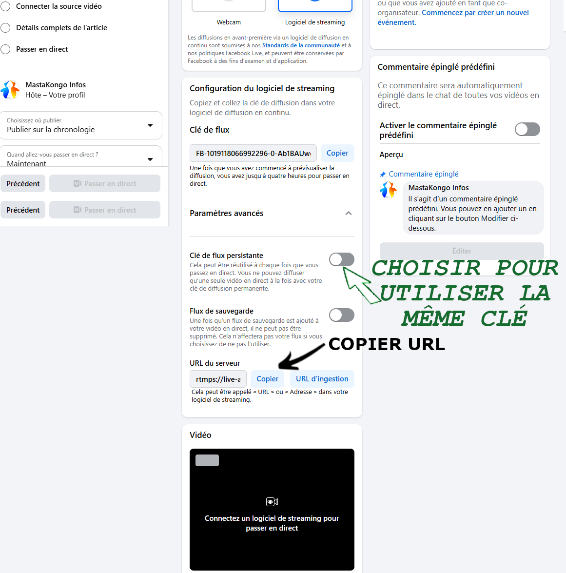 - Clé de flux RTMP.