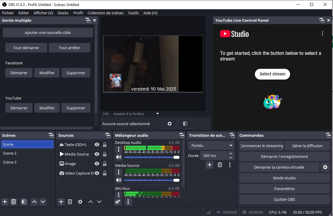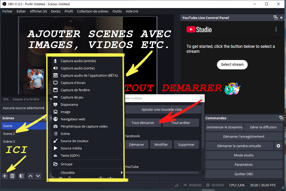 2 Vous pouvez acceder directement à YouTube à partir du logiciel OBS. Connectez-vous.